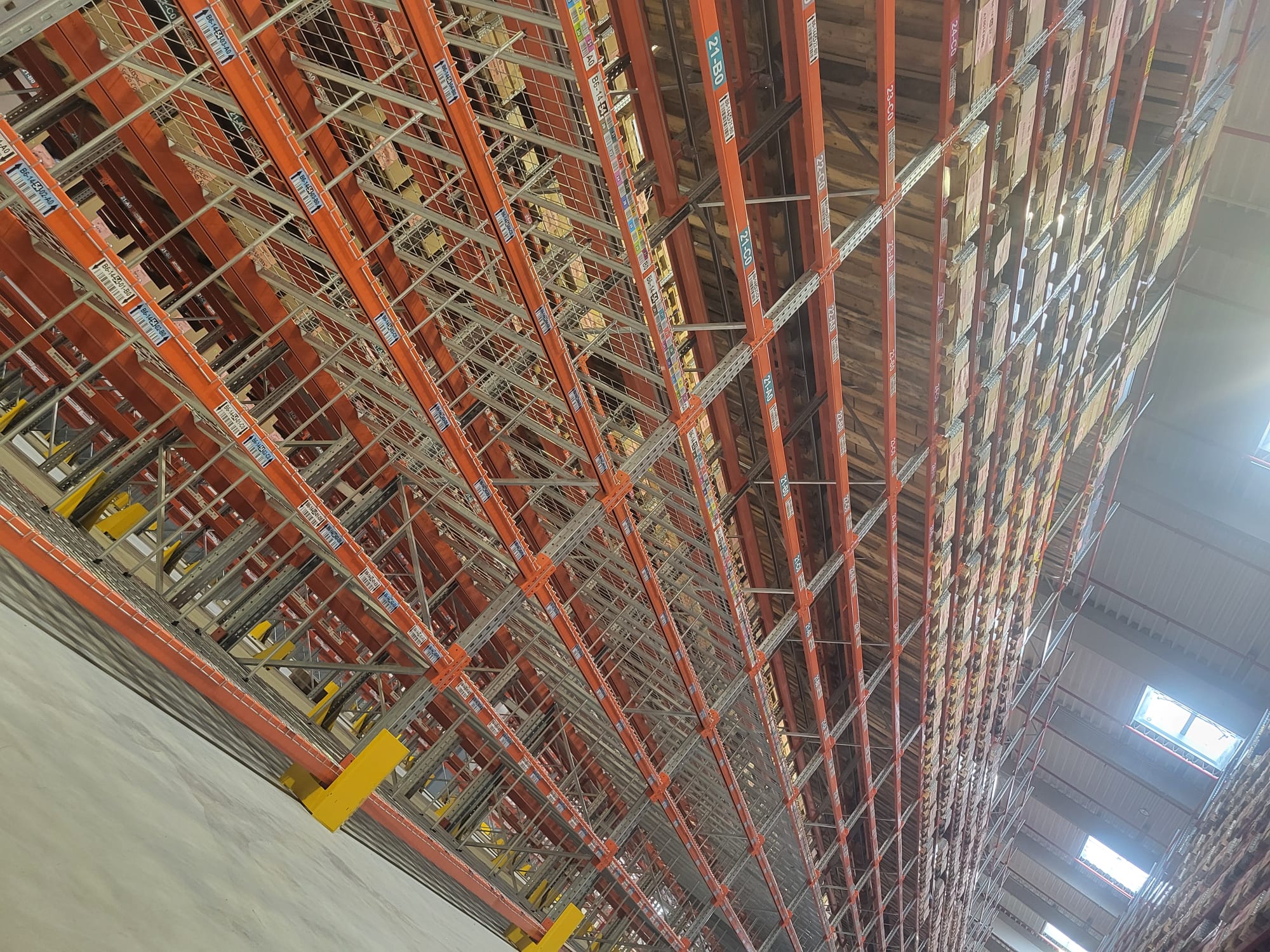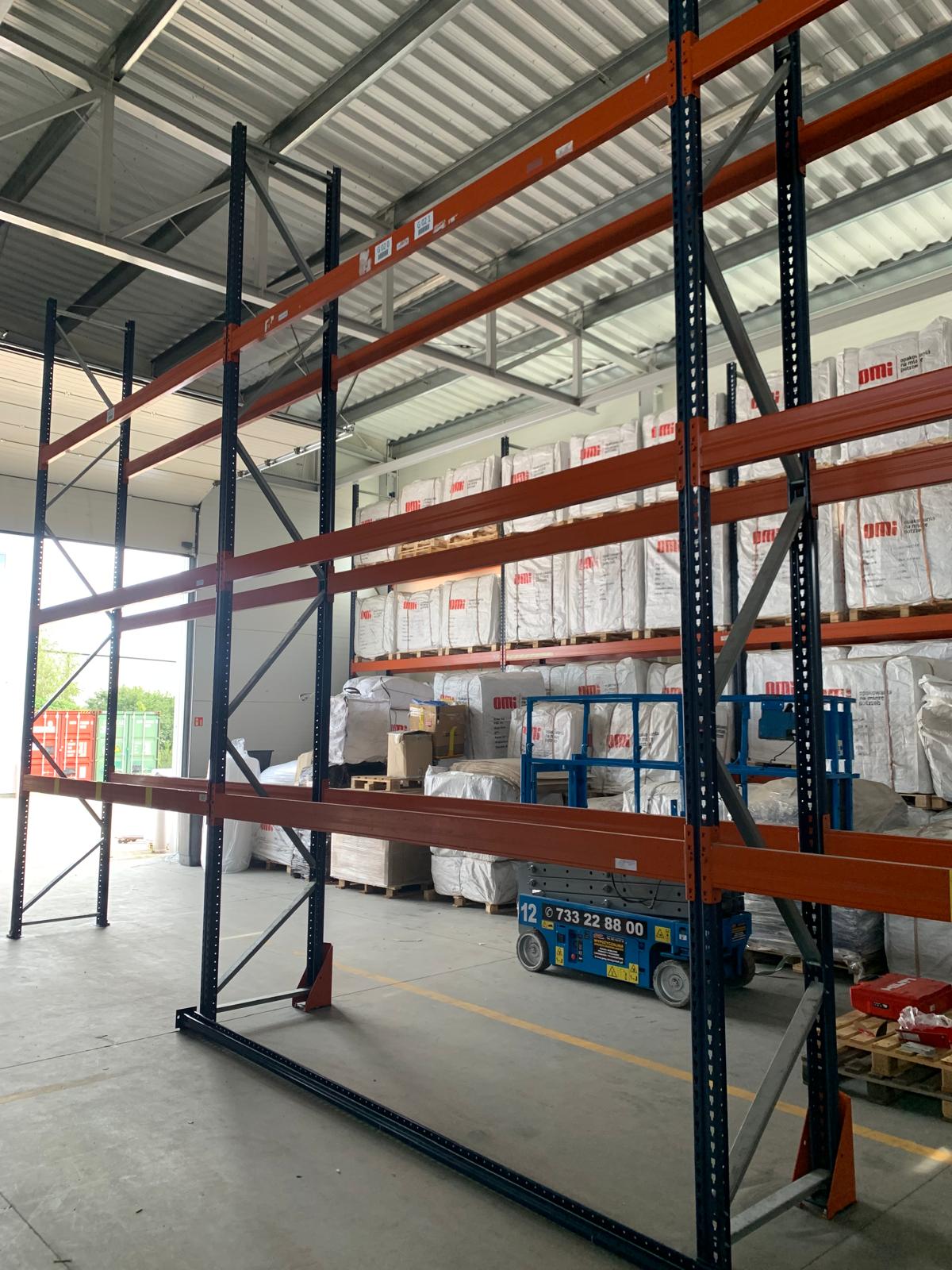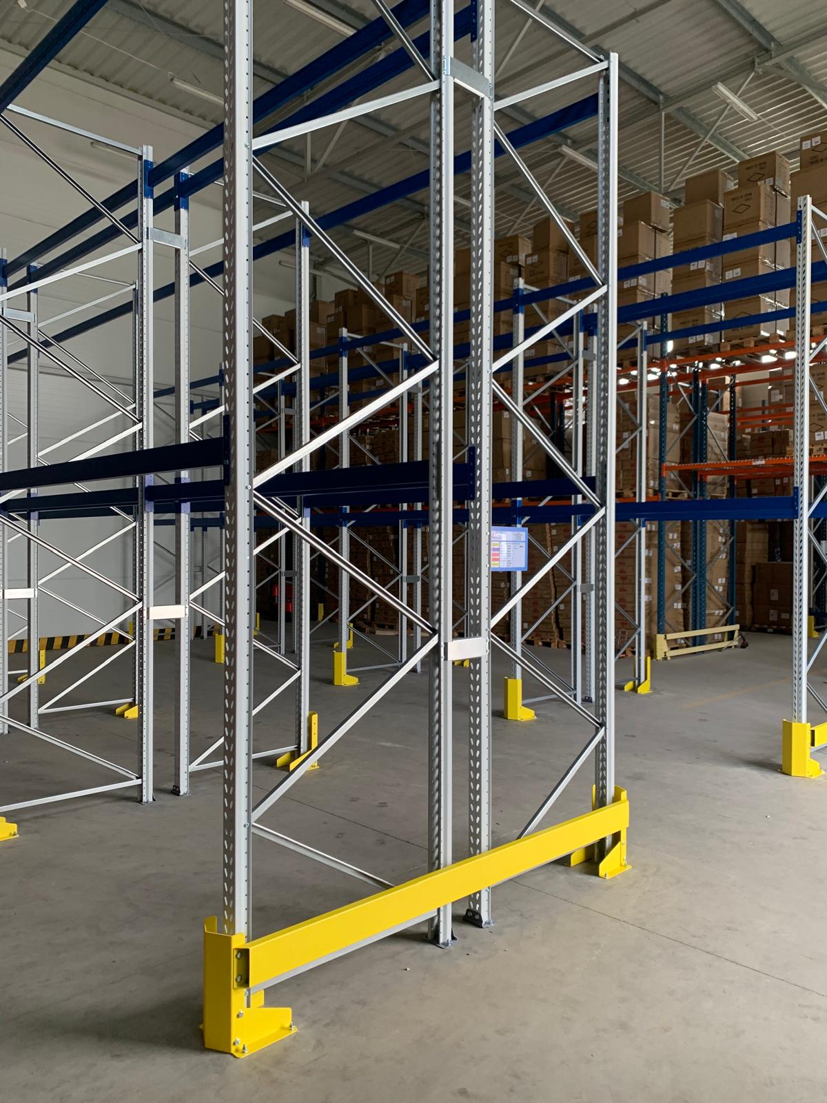 Przeprowadziliśmy przegląd regałów paletowych, zdemontowaliśmy uszkodzone części i zmontowaliśmy nowe elementy.