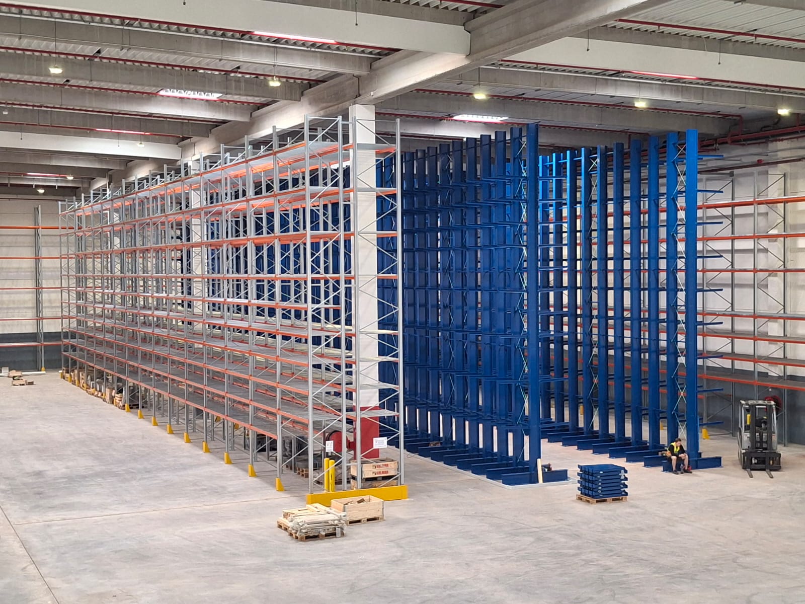 Prezentujemy ambitną realizację międzynarodową wykonaną dla globalnego operatora logistyki kontraktowej w Metz we Francji - kompleksowy projekt obejmujący instalację zaawansowanego systemu regałów wspornikowych oraz paletowych dedykowanego do obsługi łańcuchów dostaw dla branży automotive i przemysłowej. Nasz system łączy regały wspornikowe heavy duty o imponującej wysokości 11 metrów z 9 poziomami składowania oraz regały paletowe cynkowane z 10 poziomami, tworząc zintegrowane rozwiązanie magazynowe dopasowane do dynamicznych wymagań profesjonalnej logistyki 3PL. Charakterystyczna malowana proszkowo niebieska konstrukcja regałów wspornikowych nie tylko nadaje magazynowi profesjonalny wygląd zgodny z międzynarodowymi standardami korporacyjnymi, ale również zapewnia długotrwałą ochronę przed korozją w intensywnie eksploatowanym środowisku logistycznym.