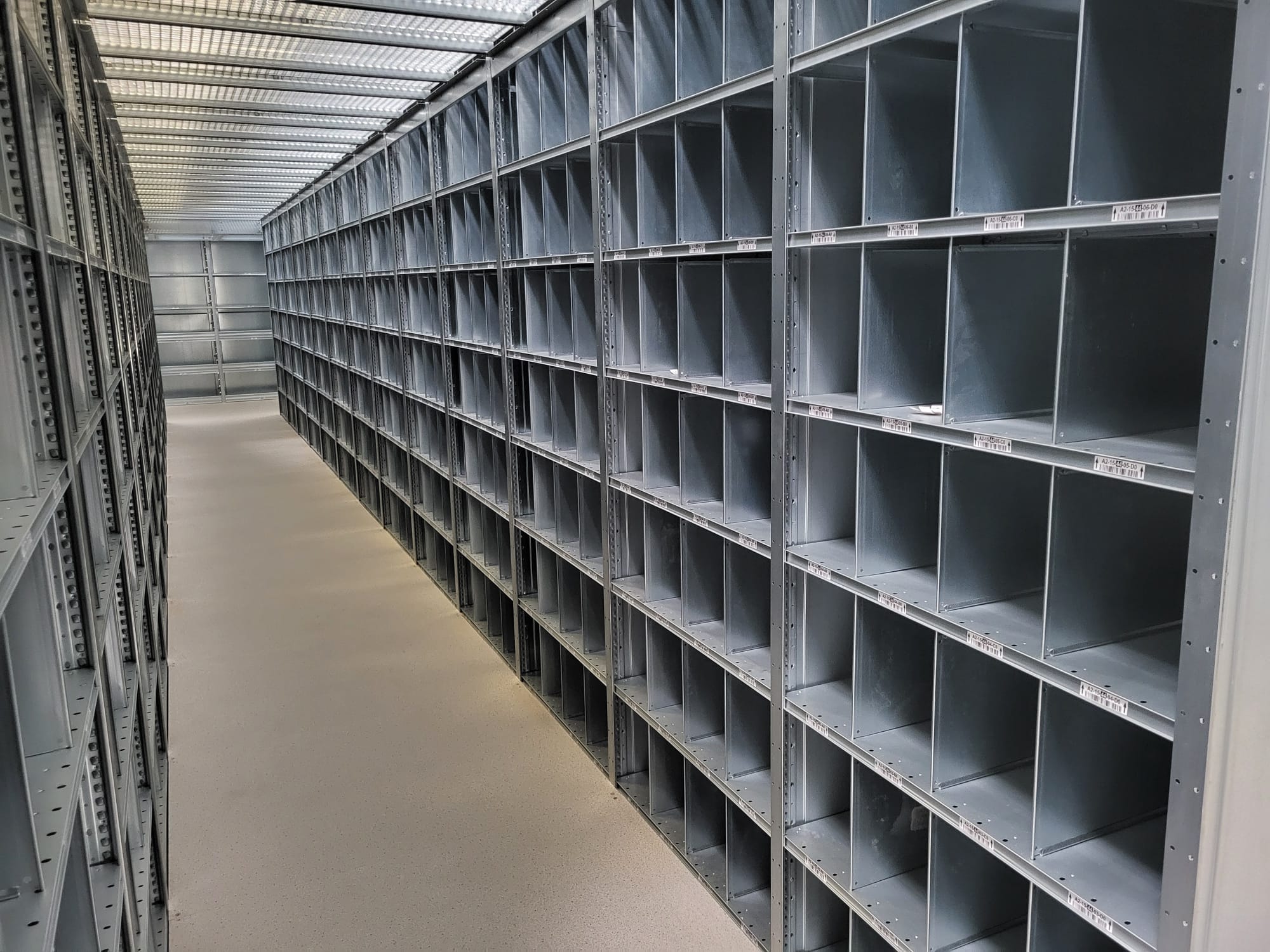 Projekt został dopasowany do potrzeb firmy, zajmującej się m.in. systemami wspierającymi pracę sieci elektroenergetycznej, wodnej i gazowej. Nowoczesna konstrukcja regałów pozwala na maksymalne wykorzystanie przestrzeni magazynowej, przy jednoczesnym zachowaniu pełnej dostępności i ergonomii pracy.
