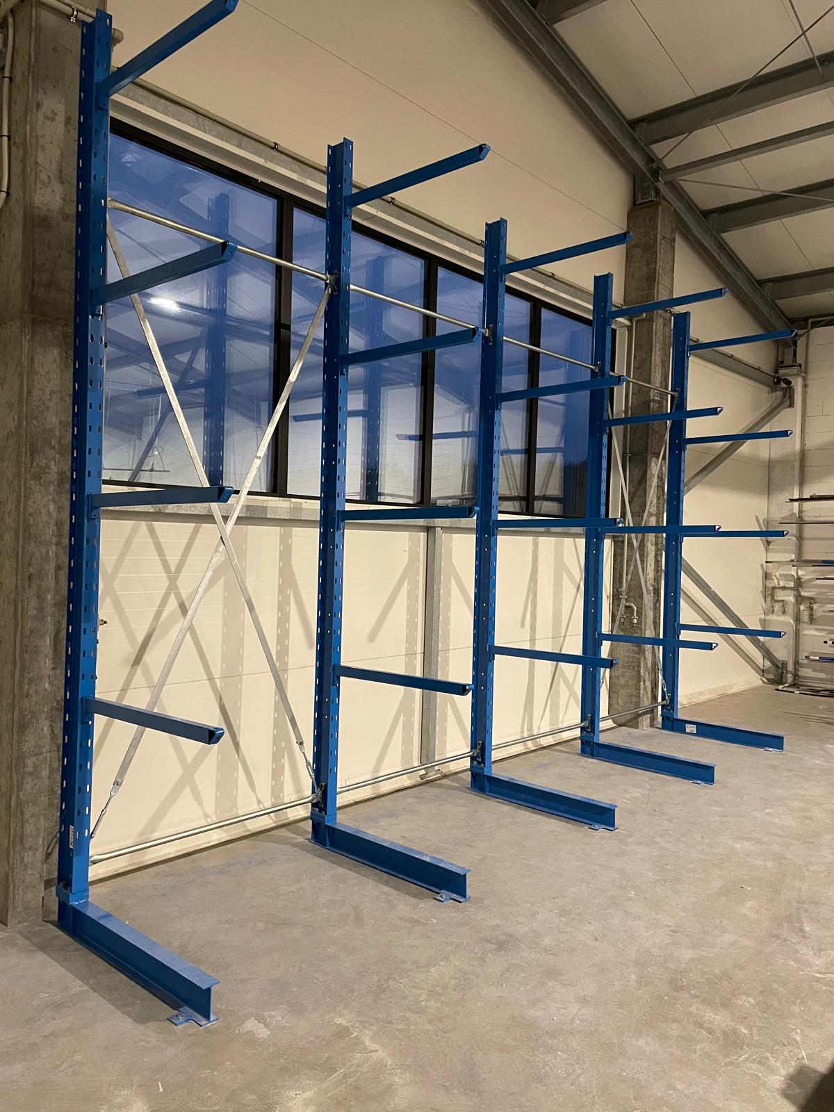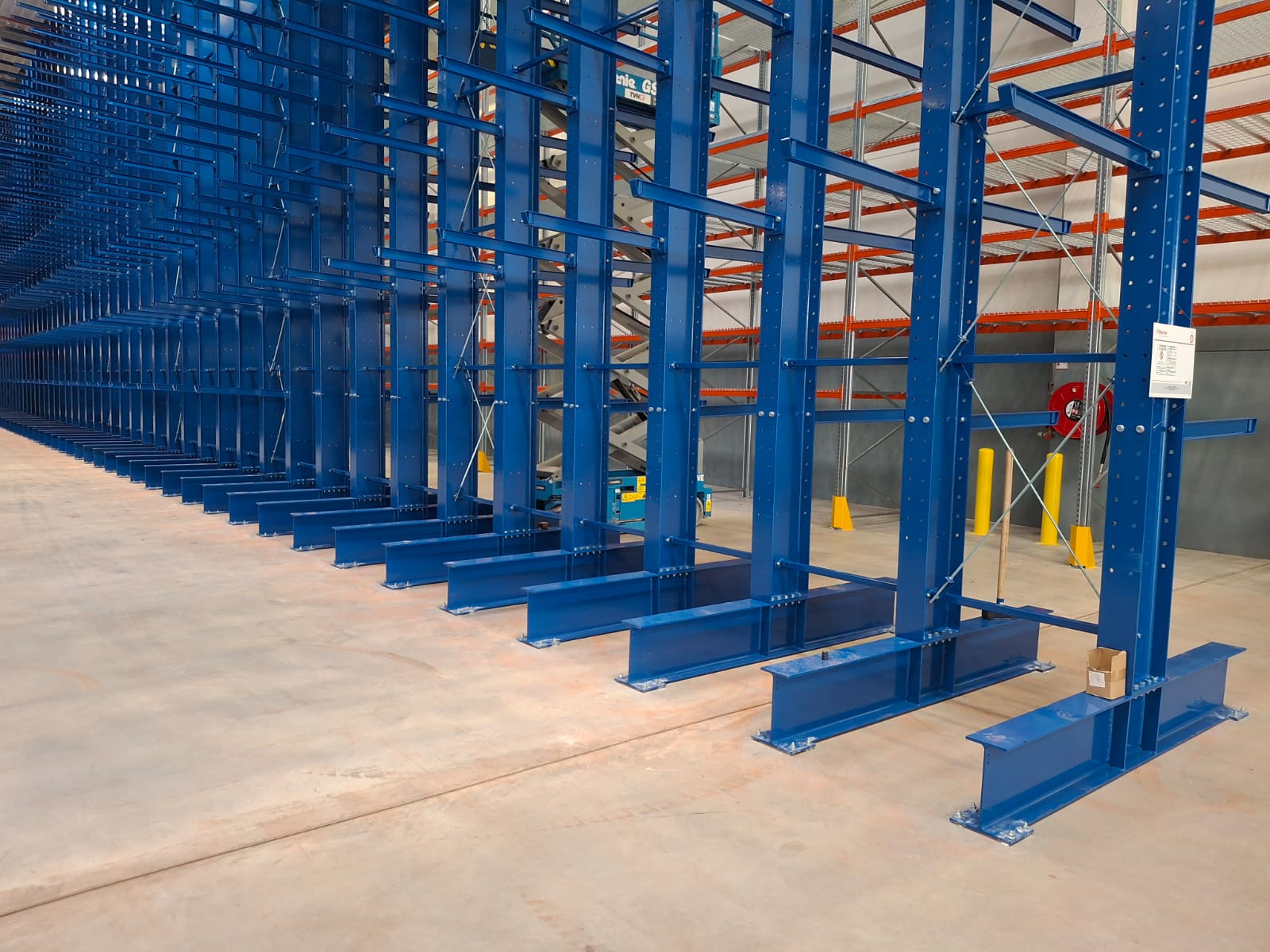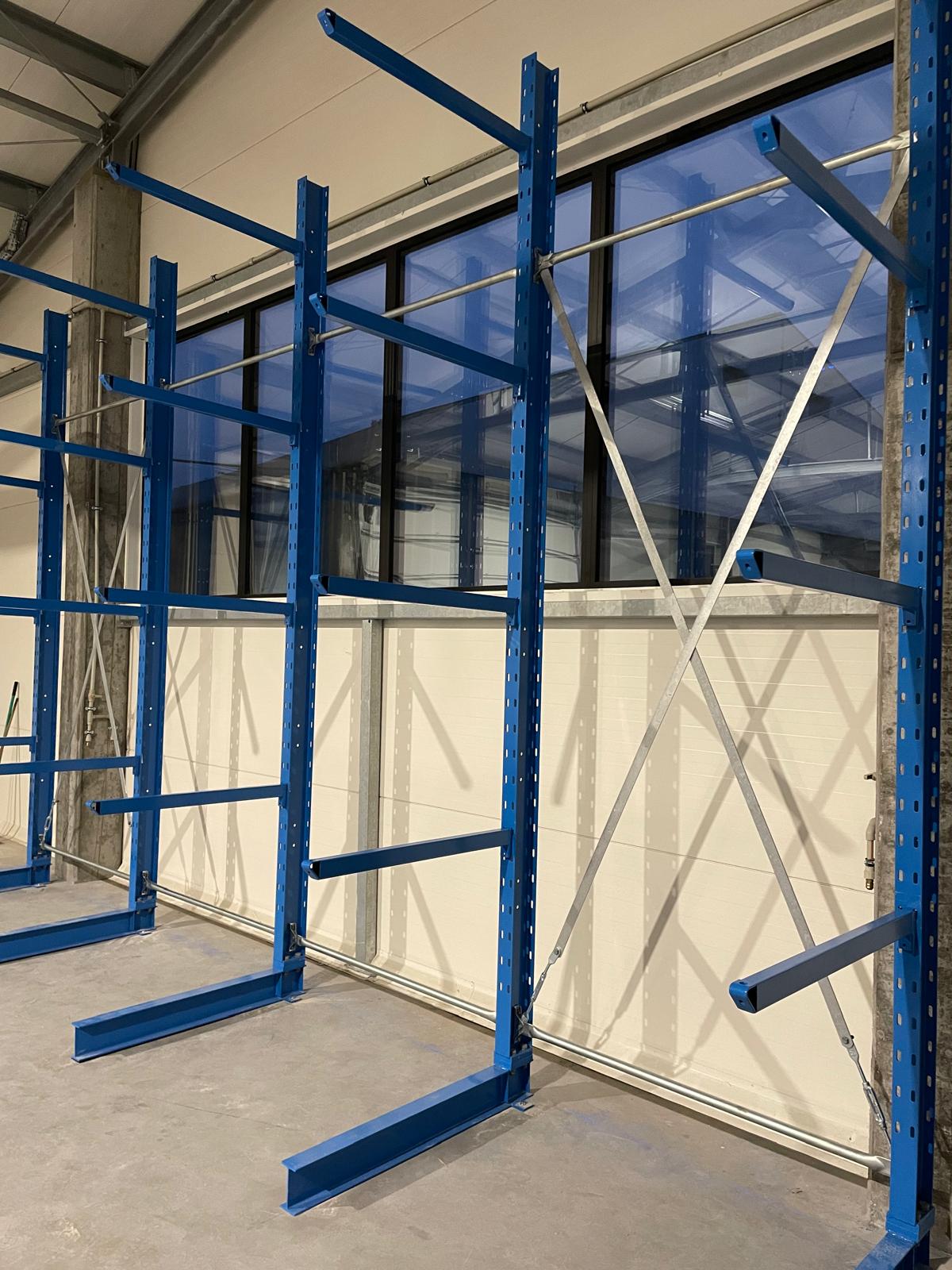 Regały wspornikowe zaprojektowano na miarę potrzeb klienta, aby najlepiej wykorzystać dostępną przestrzeń i pomieścić szeroki asortyment do produkcji. Regulowane ramiona i modułowa konstrukcja zapewniają elastyczność i łatwość modyfikacji regału.