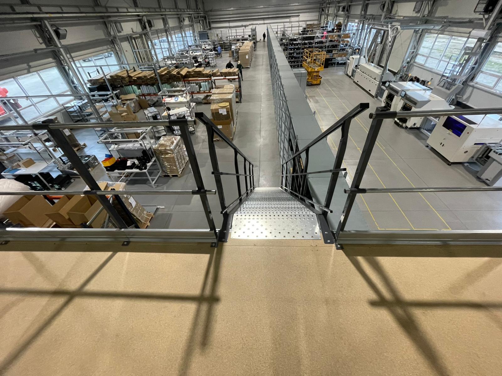 Prezentujemy kolejną realizację dla Amatech Płock - pioniera innowacyjnych rozwiązań w branży elektrotechnicznej, specjalizującego się w projektowaniu i produkcji systemów oświetlenia awaryjnego, urządzeń przeciwwybuchowych oraz elektrycznych systemów grzewczych. Nasz projekt obejmował kompleksowy montaż antresoli przemysłowej o wymiarach 12m x 5m z nośnością 350 kg/m², zaprojektowanej jako wielofunkcyjna przestrzeń biurowa nad zintegrowaną strefą garażową. W ramach tej realizacji stworzyliśmy nowoczesne rozwiązanie umożliwiające optymalne wykorzystanie przestrzeni wertykalnej w zakładzie produkcyjnym firmy działającej na rynku od 1996 roku.