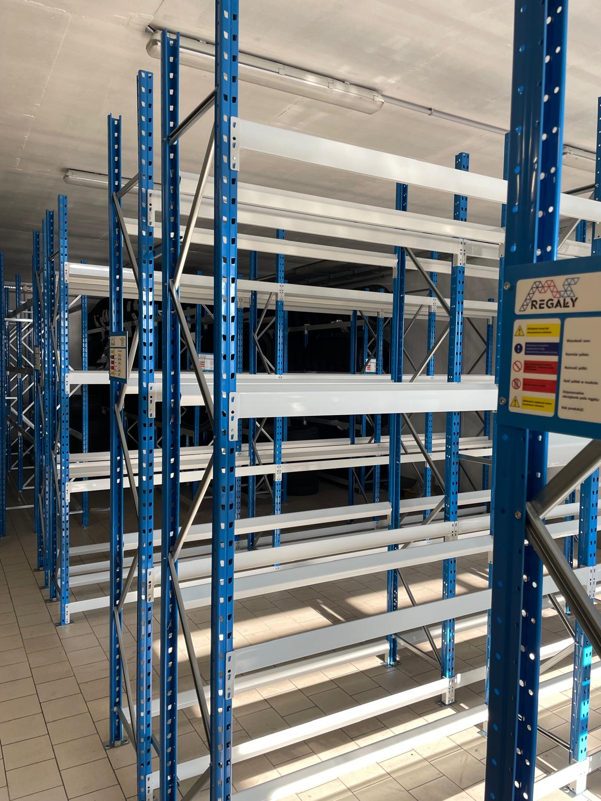 • Ciąg 41 regałów półkowych Płock AMATECH galwanizowane MS Regały najdłuższa realizacja